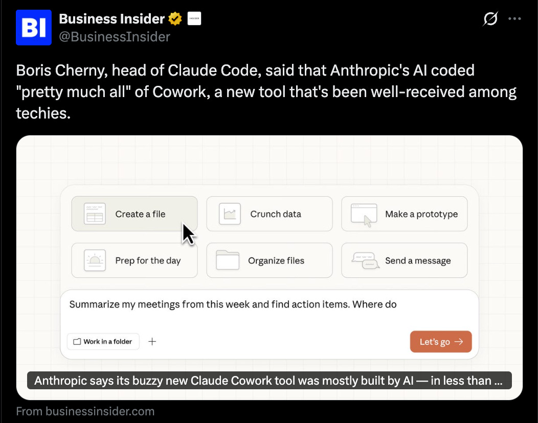This week, Anthropic launched Claude Cowork. It’s making me rethinking my career.